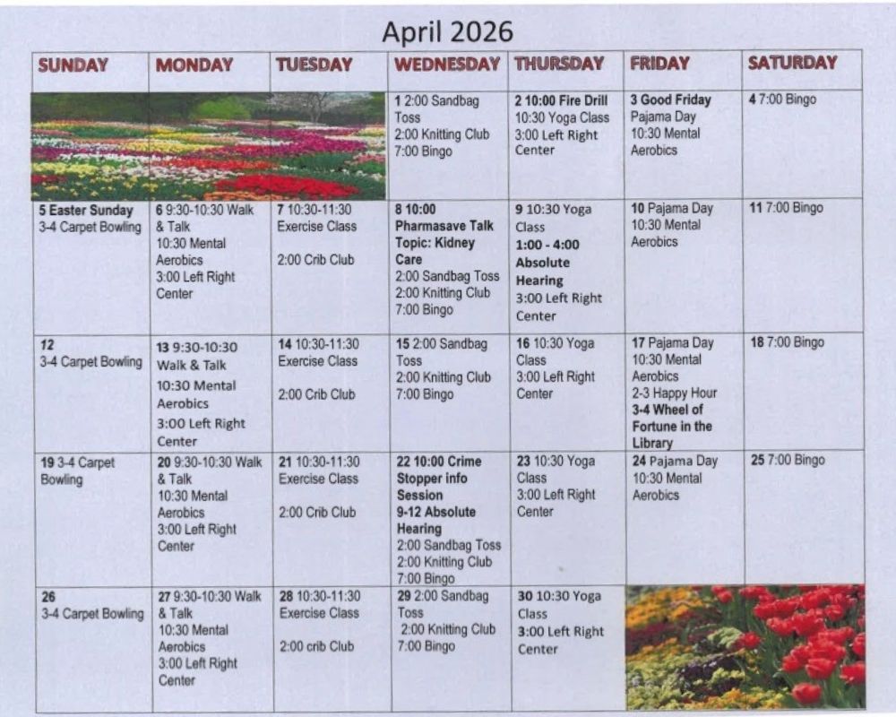 View and download our activity calendar here to see what we have planned for April at Arbourside Court.