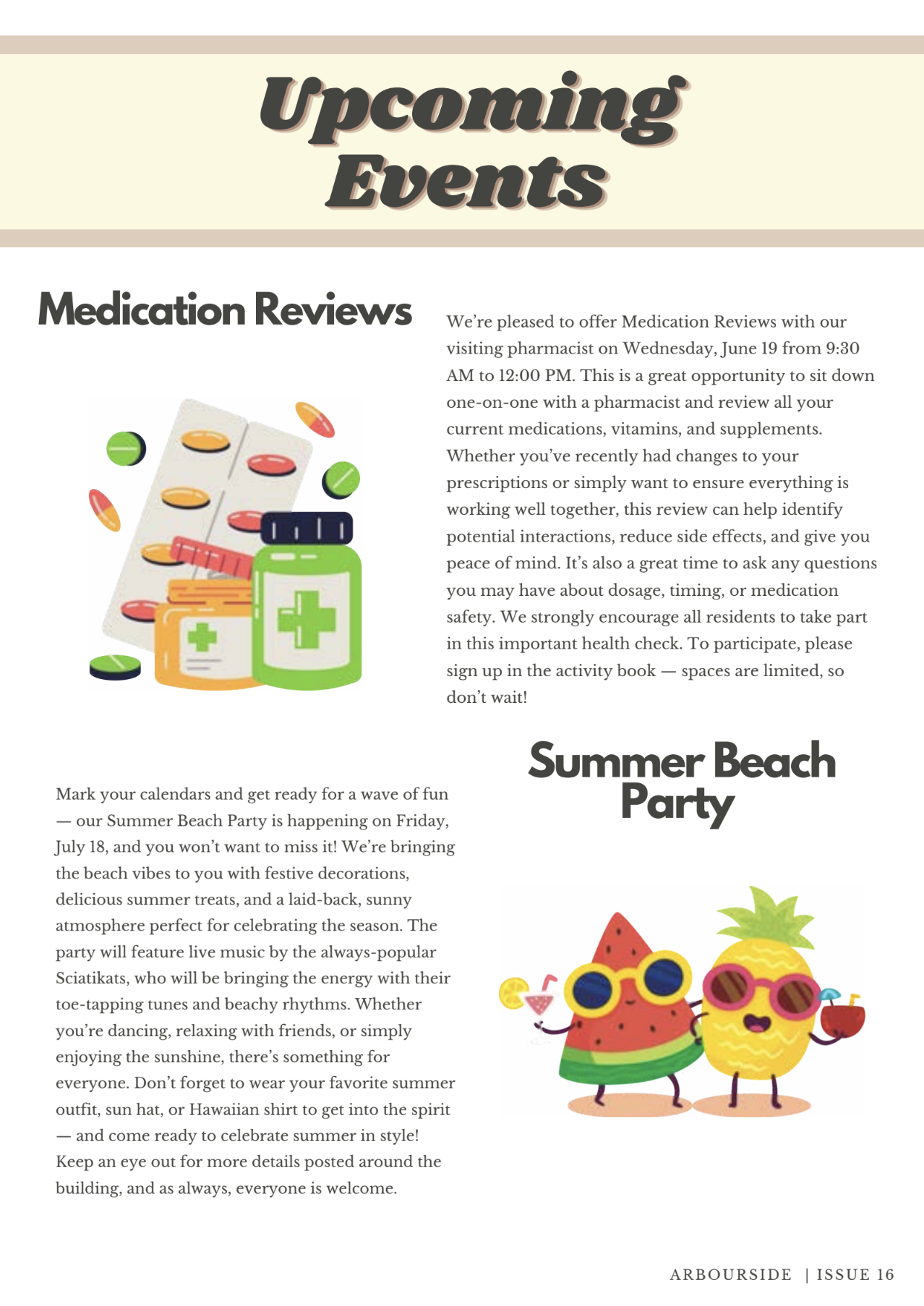 View and download our December newsletter to see what we have planned this month at Arbourside Court.